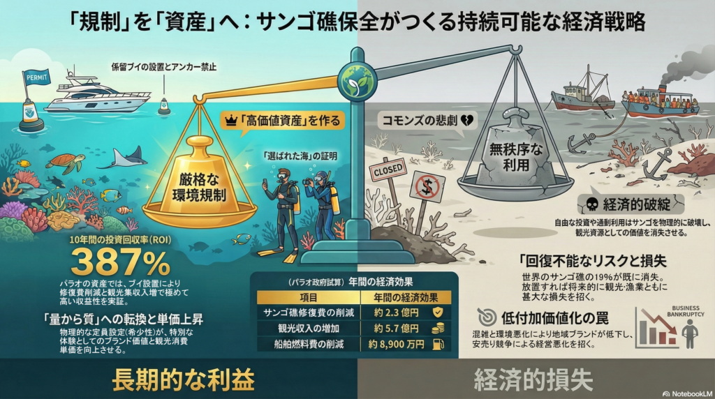 サンゴへの直接的な損傷を「経済的合理性」で抑止します。
