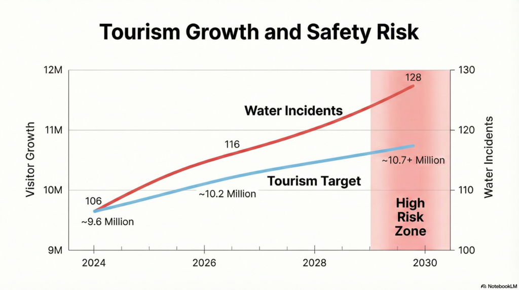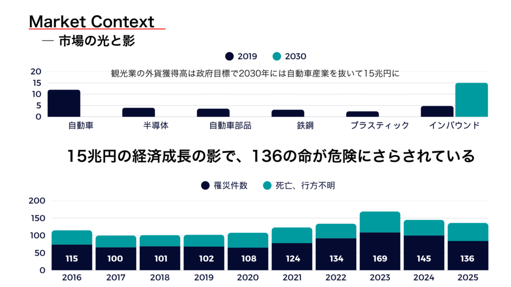 一方、沖縄はどうでしょうか。 政府目標である「2030年インバウンド消費15兆円」。この光り輝く数字の足元で、2025年の沖縄県内水難事故件数は「136件」という過去最高水準に達しました。
